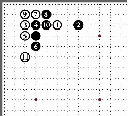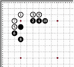 11. Дзёсэки для высокопоставленного камня. Чёрные получают влияние, а белые – владение в углу. |