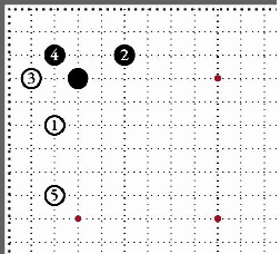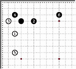 4. Если чёрные нуждаются больше во влиянии, чем во владении в углу, то они ставят клещи камнем 2. Далее идёт стандартная последовательность. Запомните камень 6, его положение очень важно. |