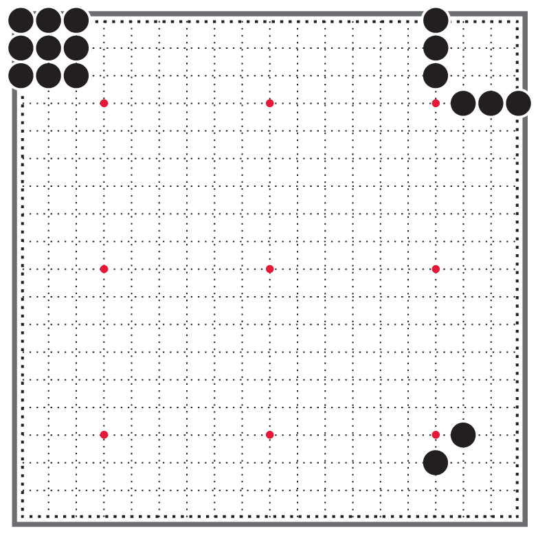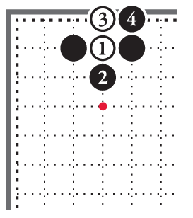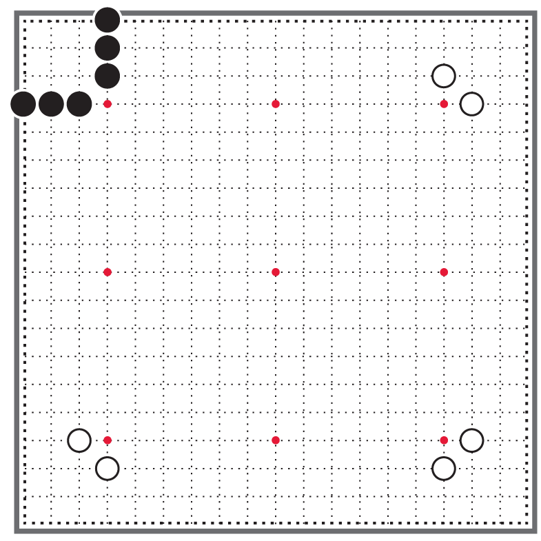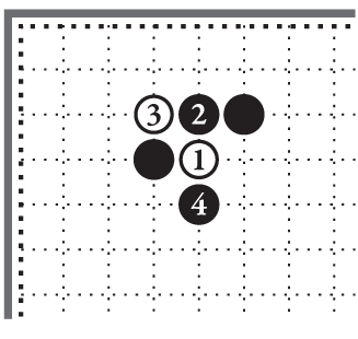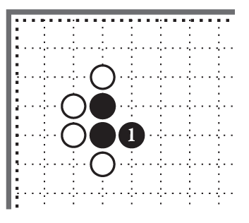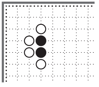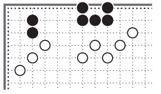 В этом углу стойка чёрных камней закрытая, противник не может пробраться внутрь чёрного угла, двигаясь по левой или по нижней стороне [10].