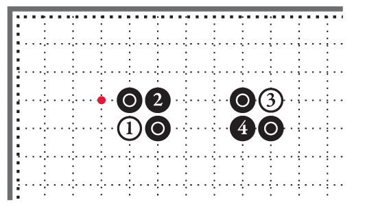 Для того, чтобы построить камни в углу, поделив его с камнями противоположного цвета, достаточно учитывать четыре показателя углового построения камней: