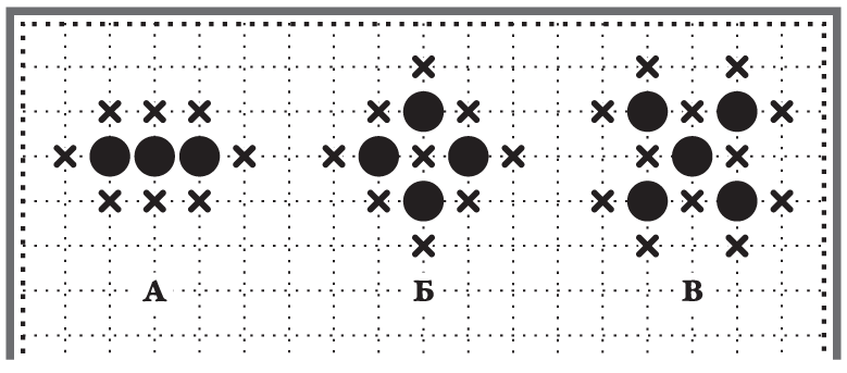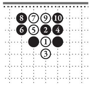 Слева на зарисовке 3-10 показан действенный строй чёрных камней. В нём нет разрывов, камни стоят в стойках, налажена совместная работа по удержанию стороны.