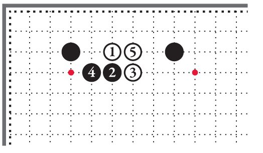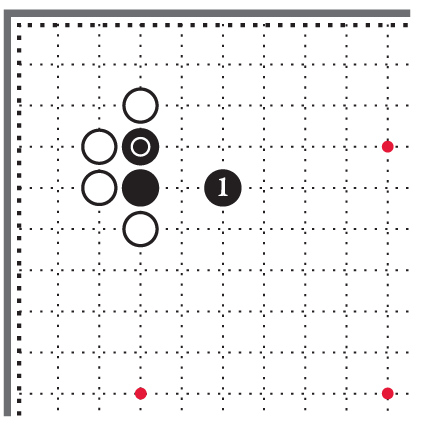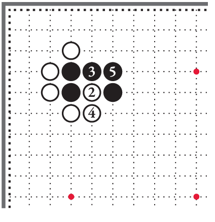 Чёрный камень 5 поставлен на вторую линию на верхней стороне. Учитель называет её «линией поражения». Камень на этой линии стоит слишком близко к краю доски, чтобы приносить достаточное владение или оказывать влияние.
