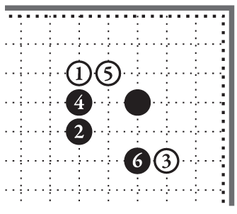Чёрный камень 3 поставлен в срединную часть игрового поля. Белый камень 4 стоит в нижнем правом углу на четвёртой линии. Эту линию Учитель называет «линией влияния».