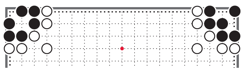Ещё раз посмотрим на построения чёрных и белых камней. Строй чёрных напоминает ковш. Белые стоят двумя разделёнными отрядами на противоположных сторонах доски.